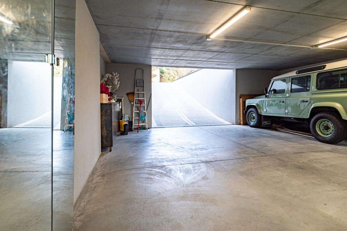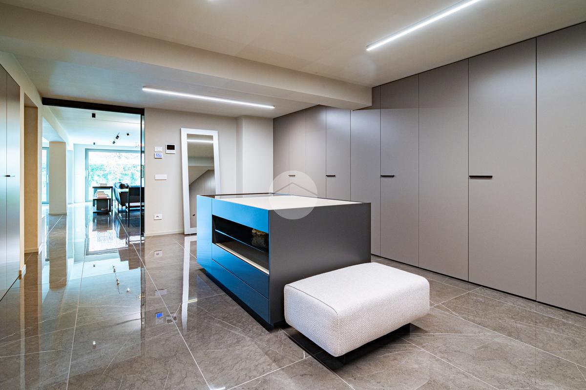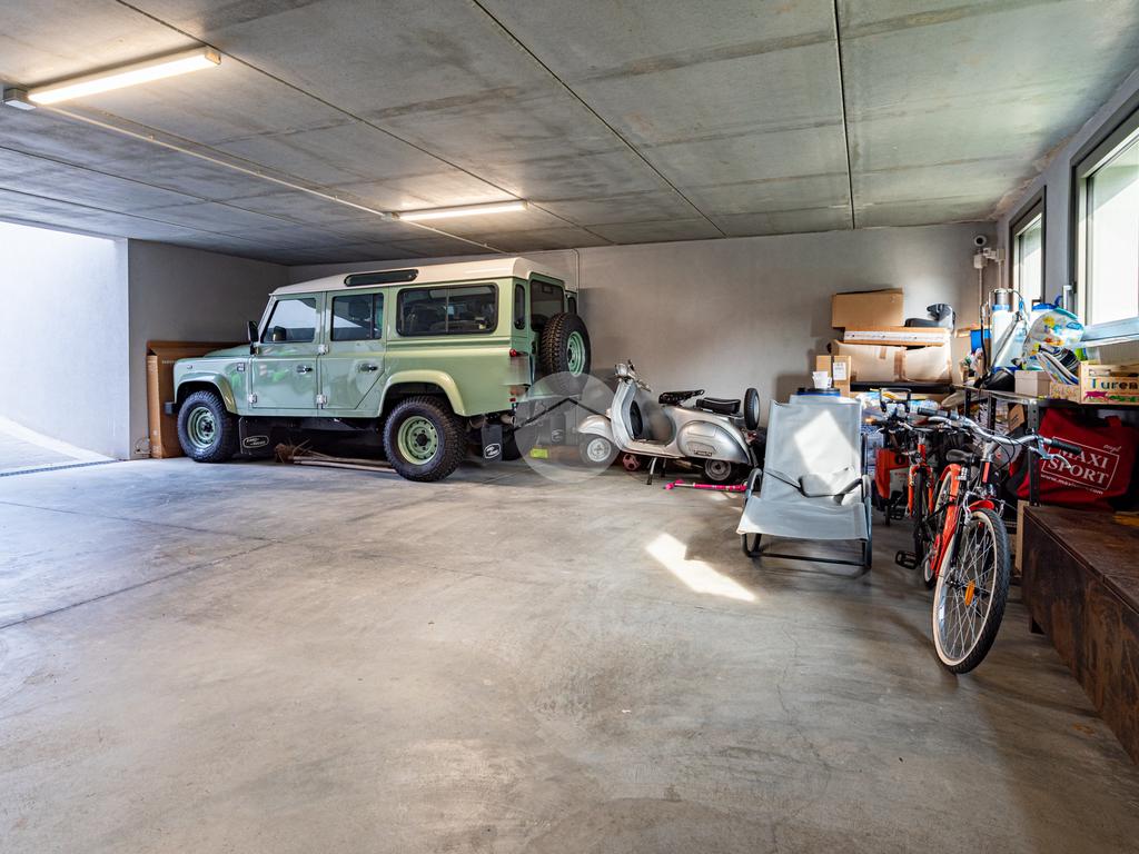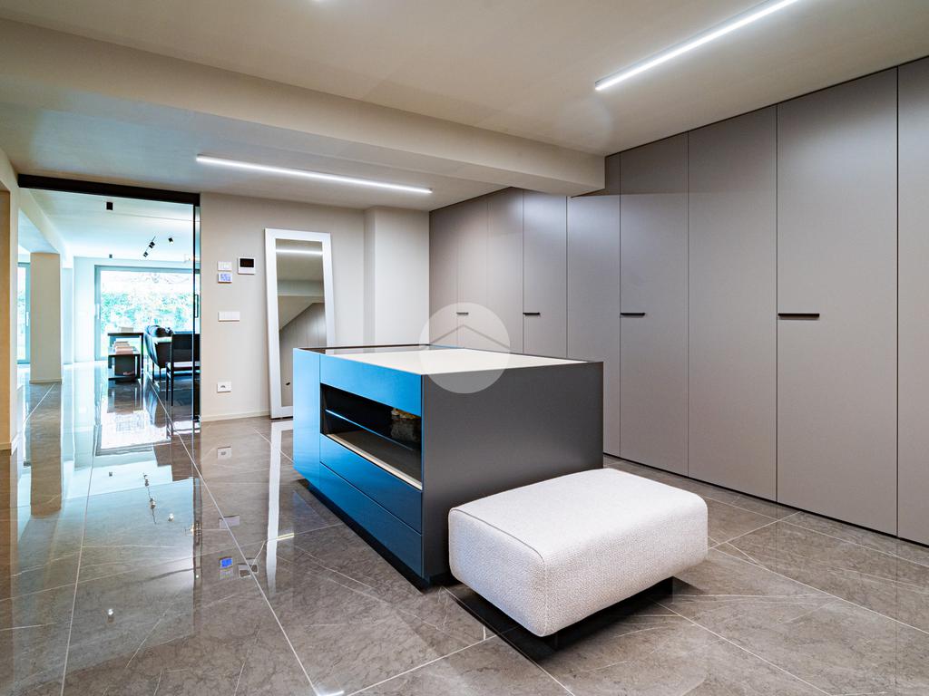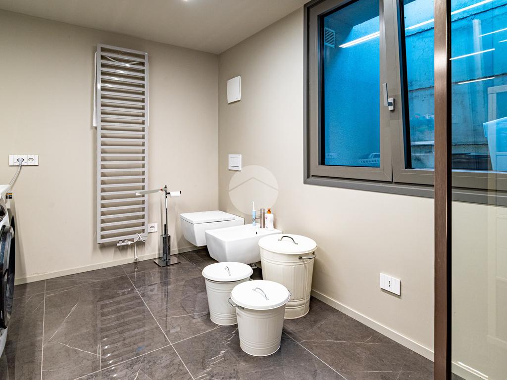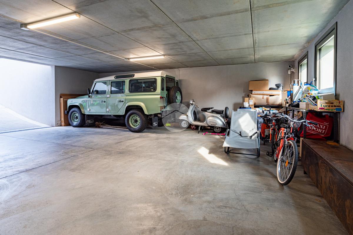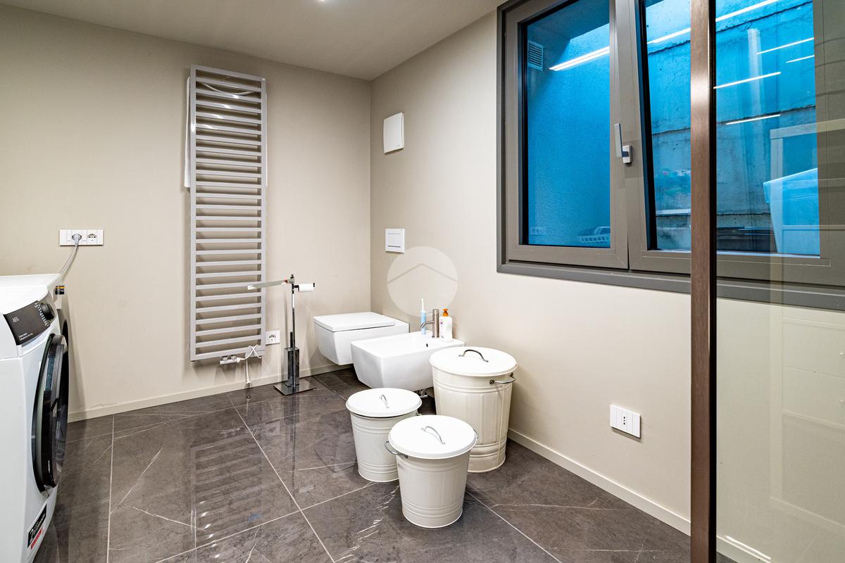Piano sottostrada – 110 mq: ampio openspace adibito a soggiorno con cucina a vista, utilizzato come “taverna”, con ampia vetrata. Completano il piano cabina armadio, lavanderia con sanitari e vano tecnico. Accesso diretto al box doppio in larghezza di circa 56 mq, dotato di basculante elettrica.