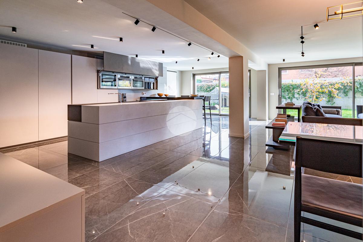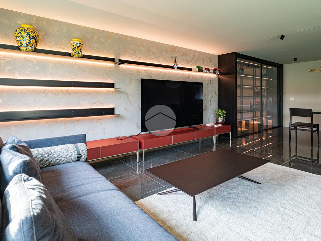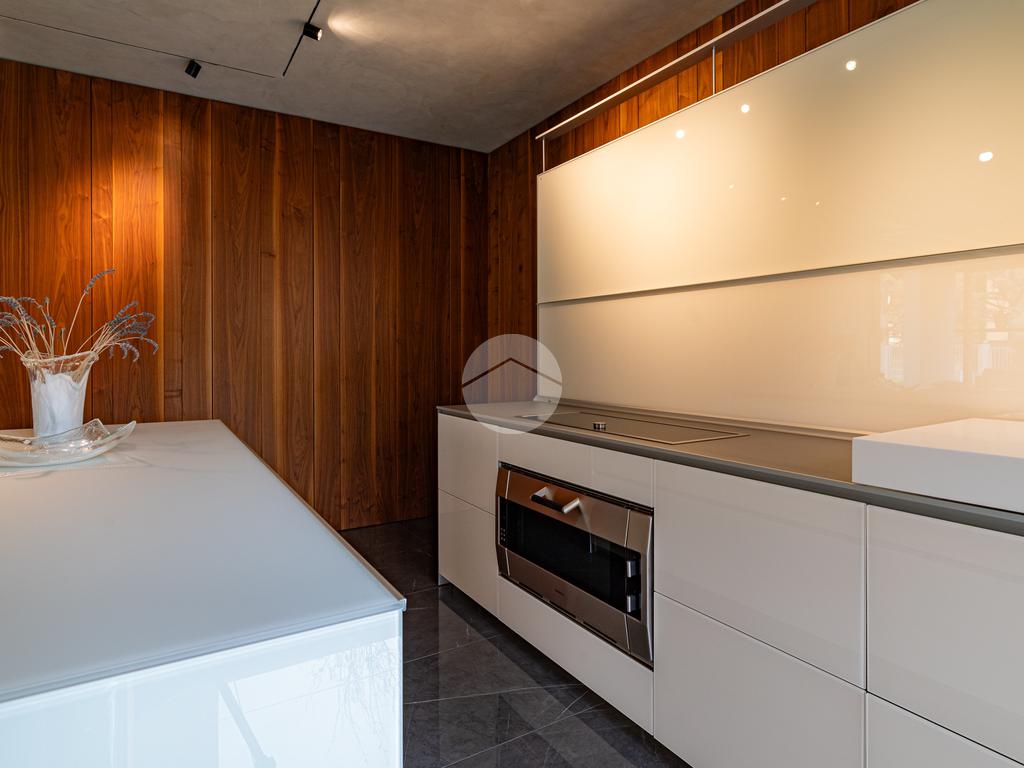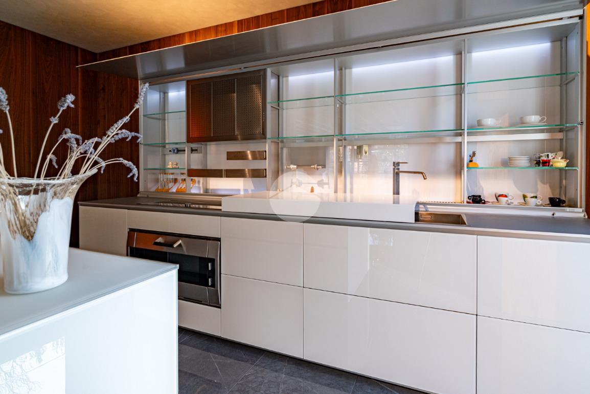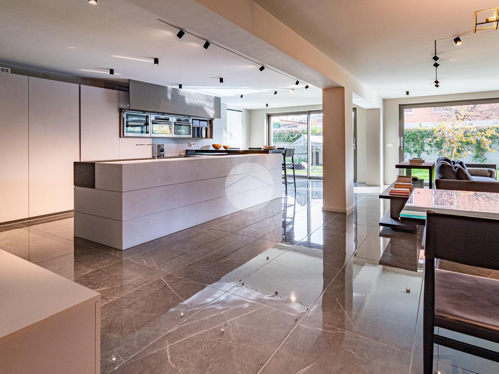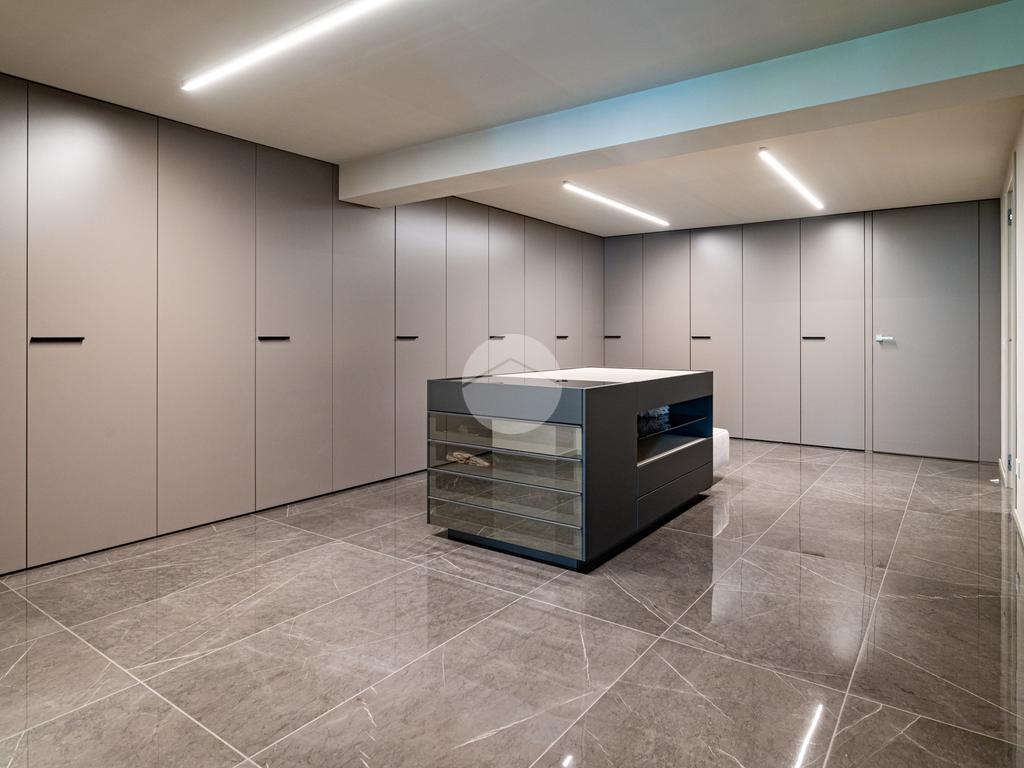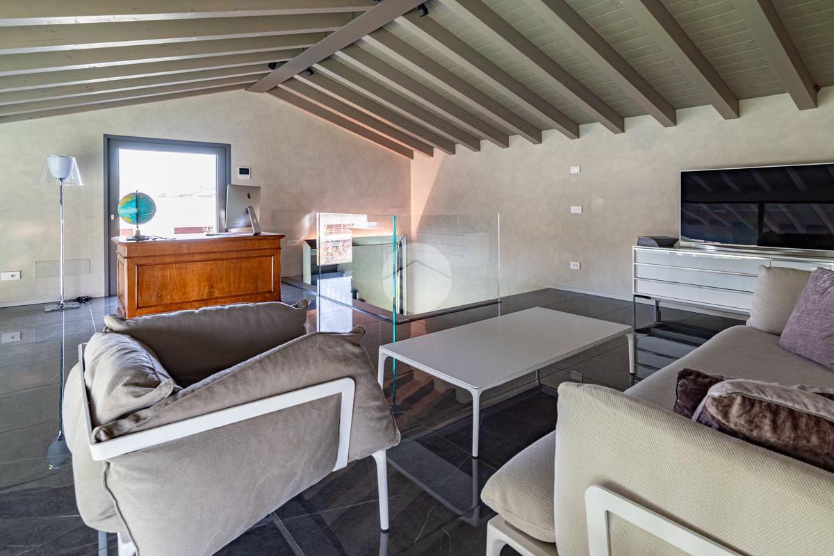 Piano sottostrada – 110 mq: ampio openspace adibito a soggiorno con cucina a vista, utilizzato come “taverna”, con ampia vetrata. Completano il piano cabina armadio, lavanderia con sanitari e vano tecnico. Accesso diretto al box doppio in larghezza di circa 56 mq, dotato di basculante elettrica.