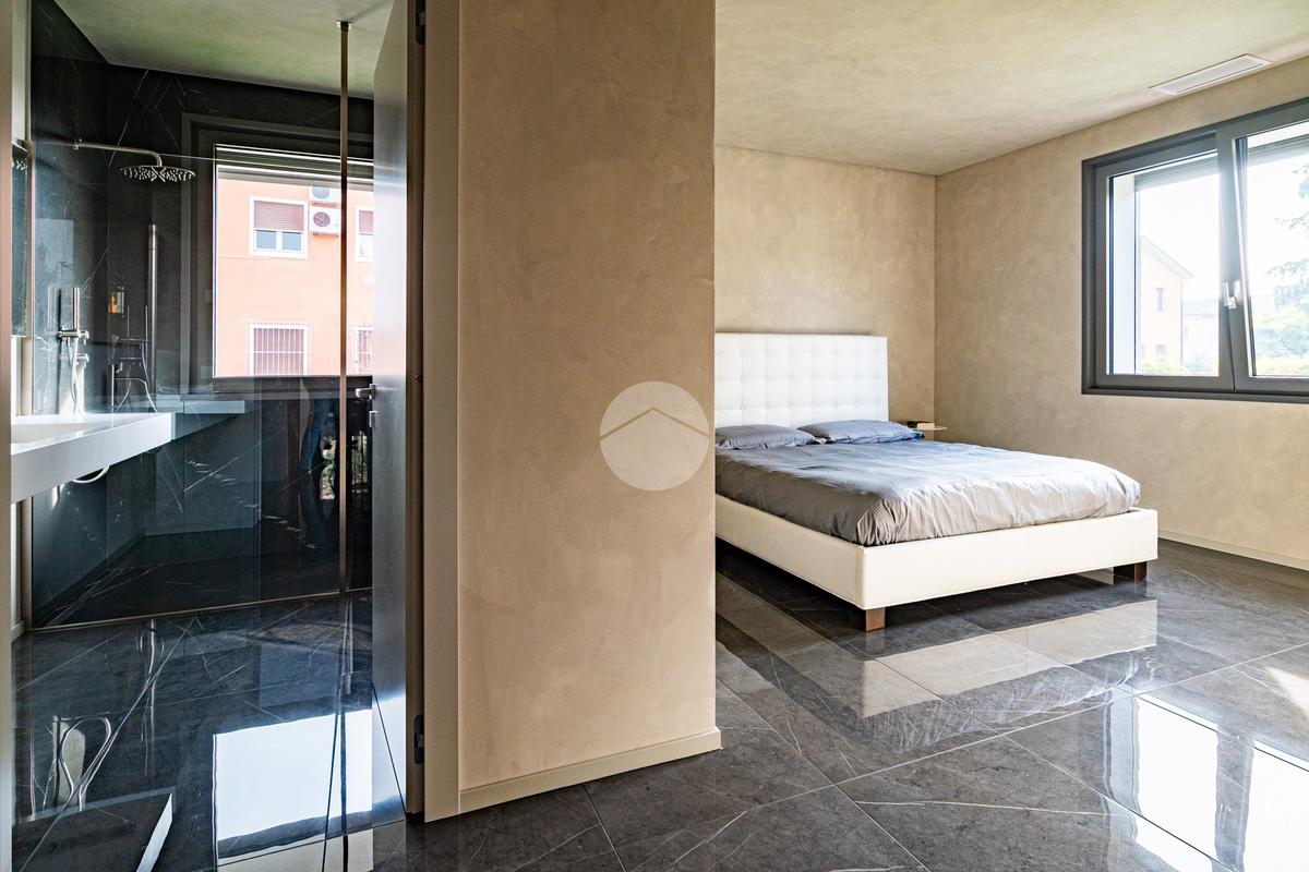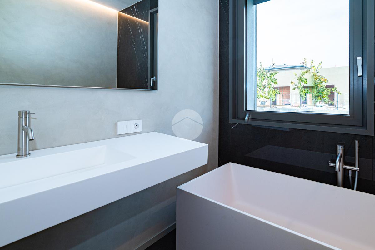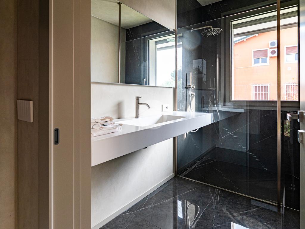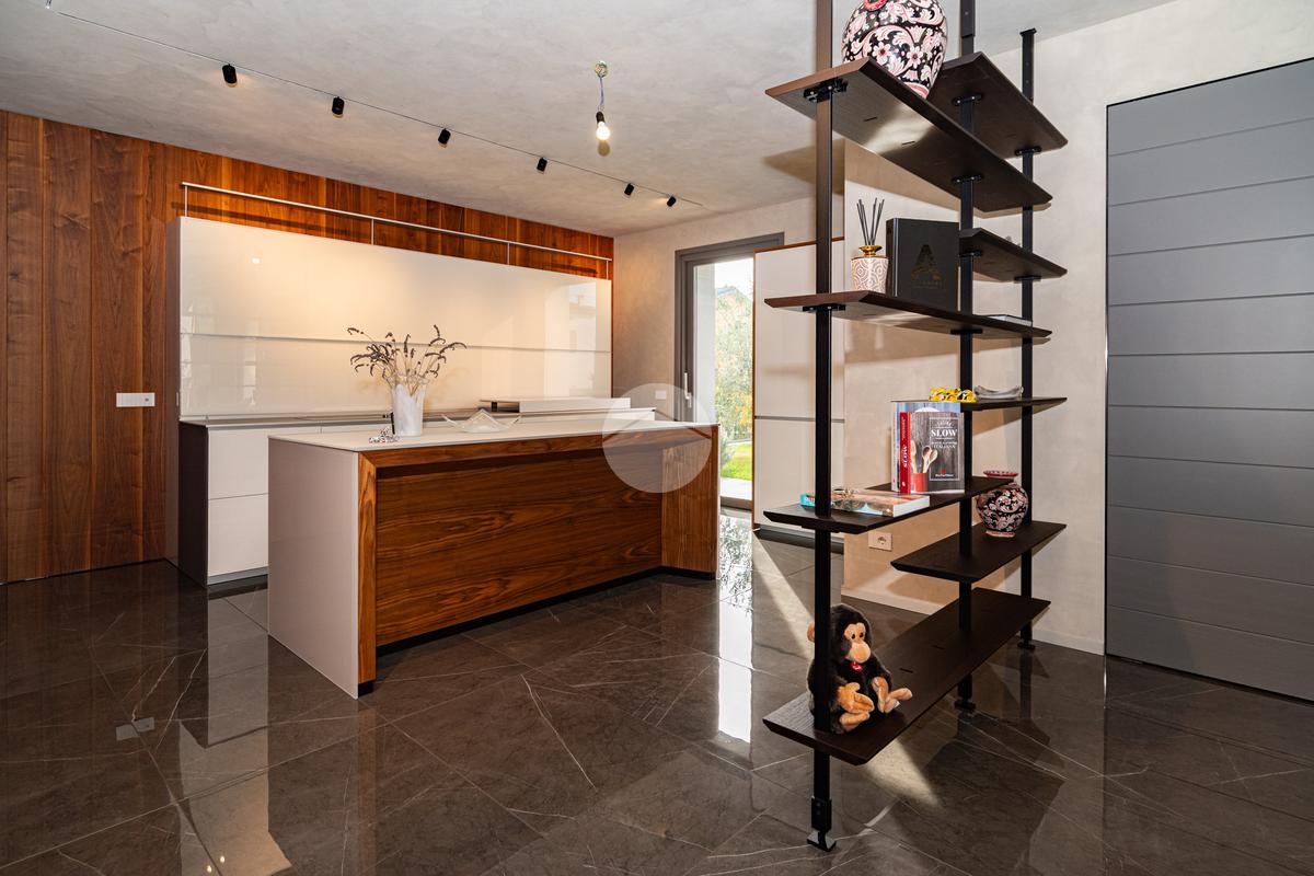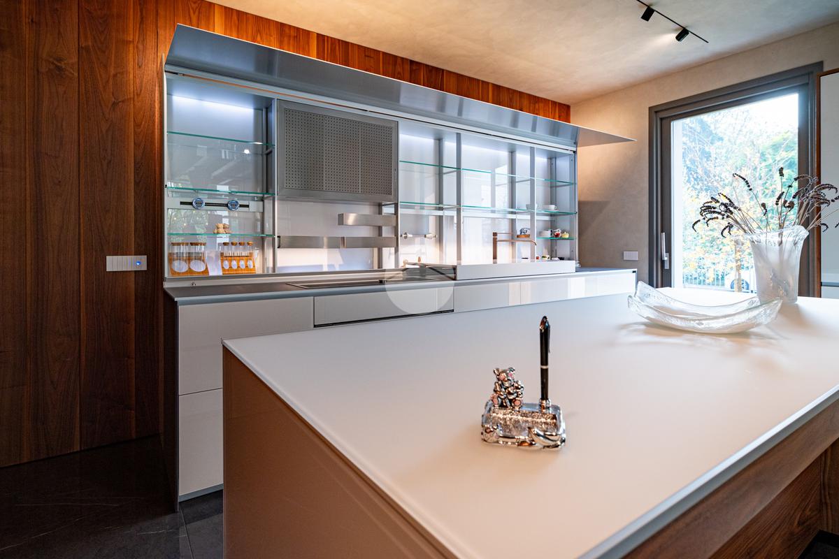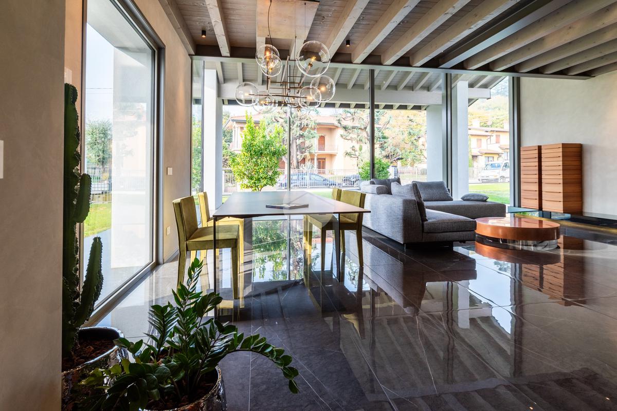 Piano sottostrada – 110 mq: ampio openspace adibito a soggiorno con cucina a vista, utilizzato come “taverna”, con ampia vetrata. Completano il piano cabina armadio, lavanderia con sanitari e vano tecnico. Accesso diretto al box doppio in larghezza di circa 56 mq, dotato di basculante elettrica.
