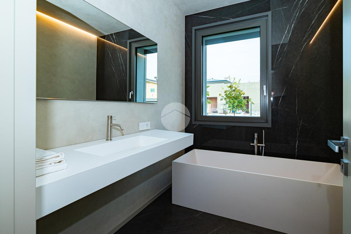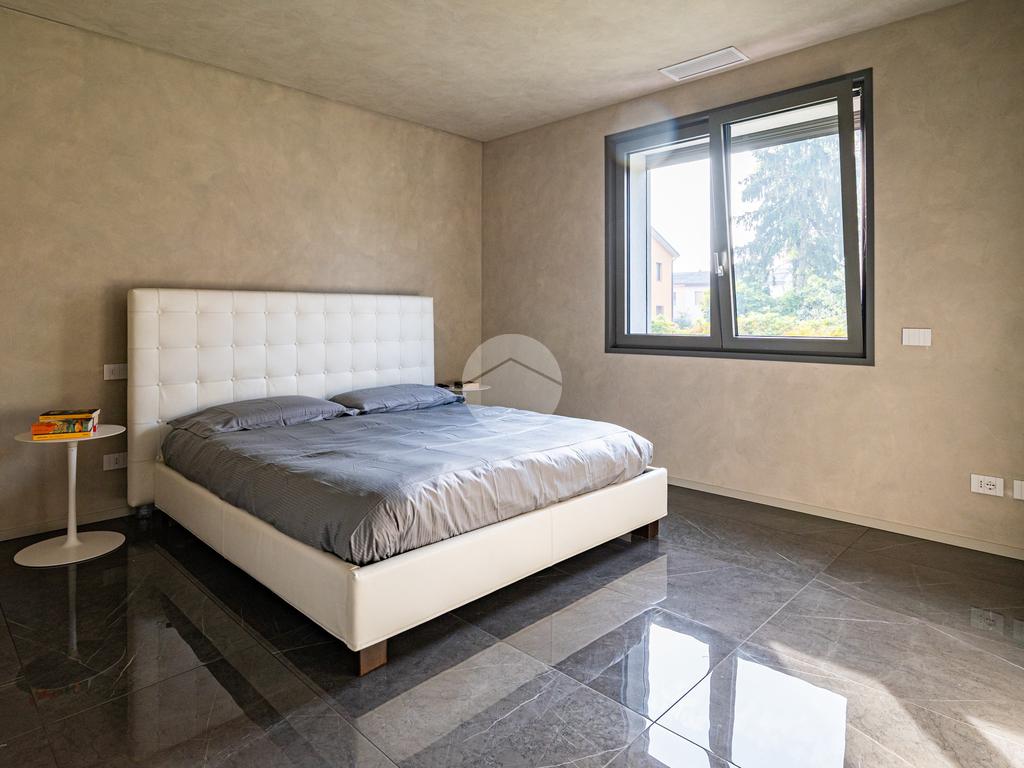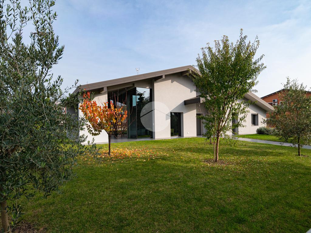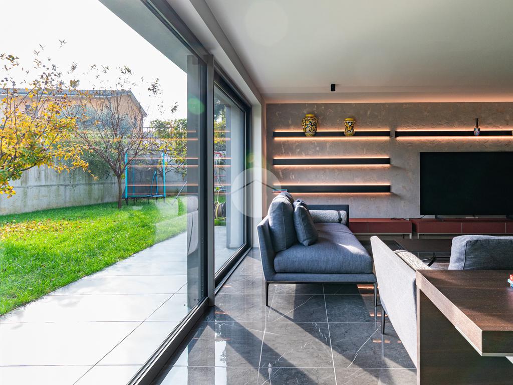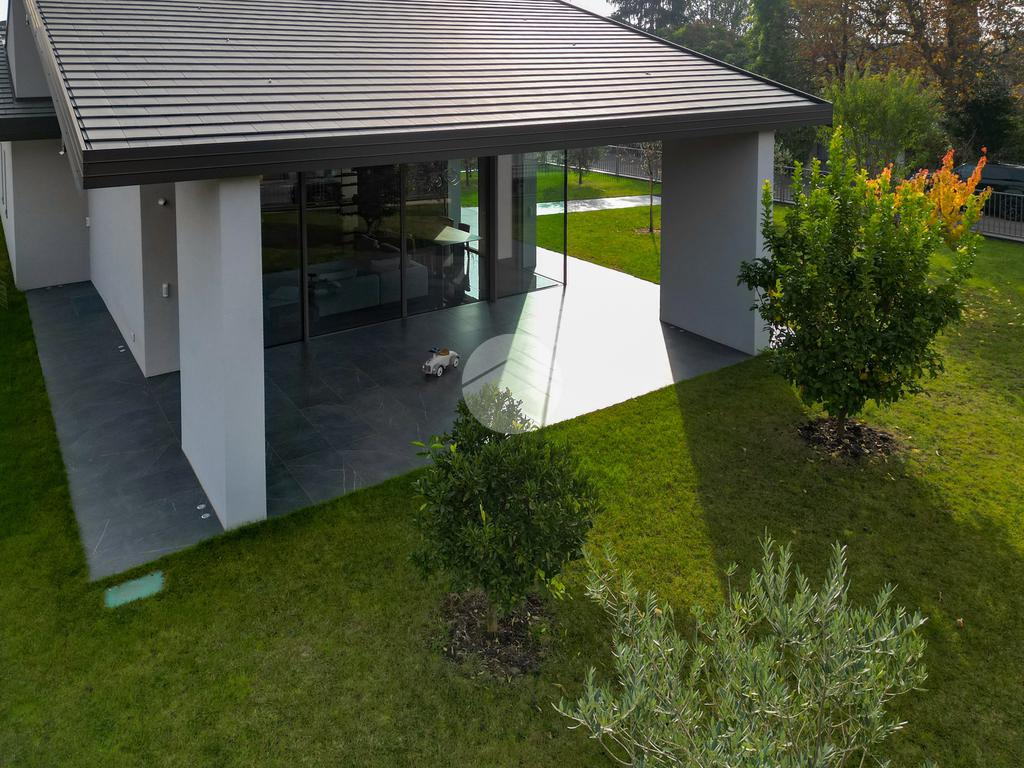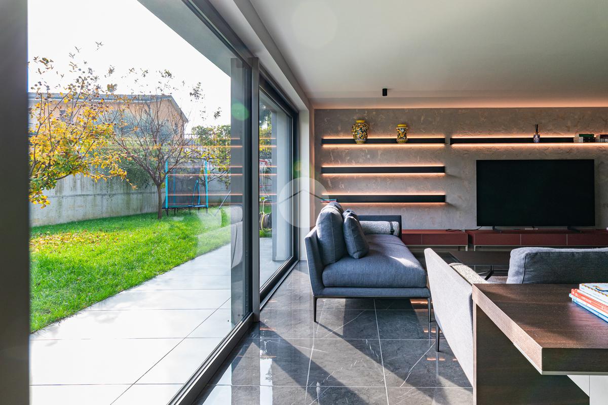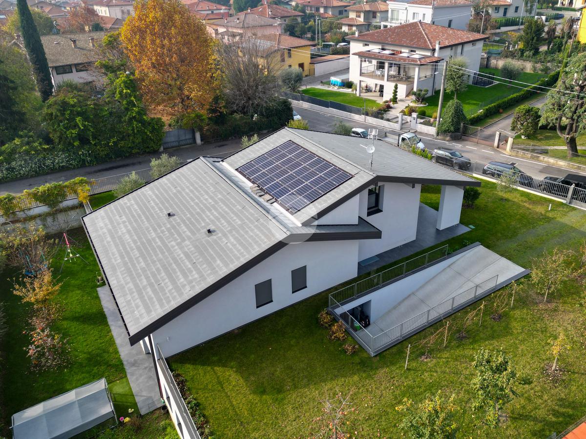 La casa si distingue per finiture di pregio e tecnologie all’avanguardia, tra cui serramenti di alta qualità con triplo vetro e isolamento termico di eccellente livello, pompa di calore per riscaldamento e acqua calda, impianto fotovoltaico, sistema domotico completo per il controllo di luci, tapparelle e climatizzazione, videocitofono, predisposizione per allarme e videosorveglianza, e pavimenti e rivestimenti di alto livello.