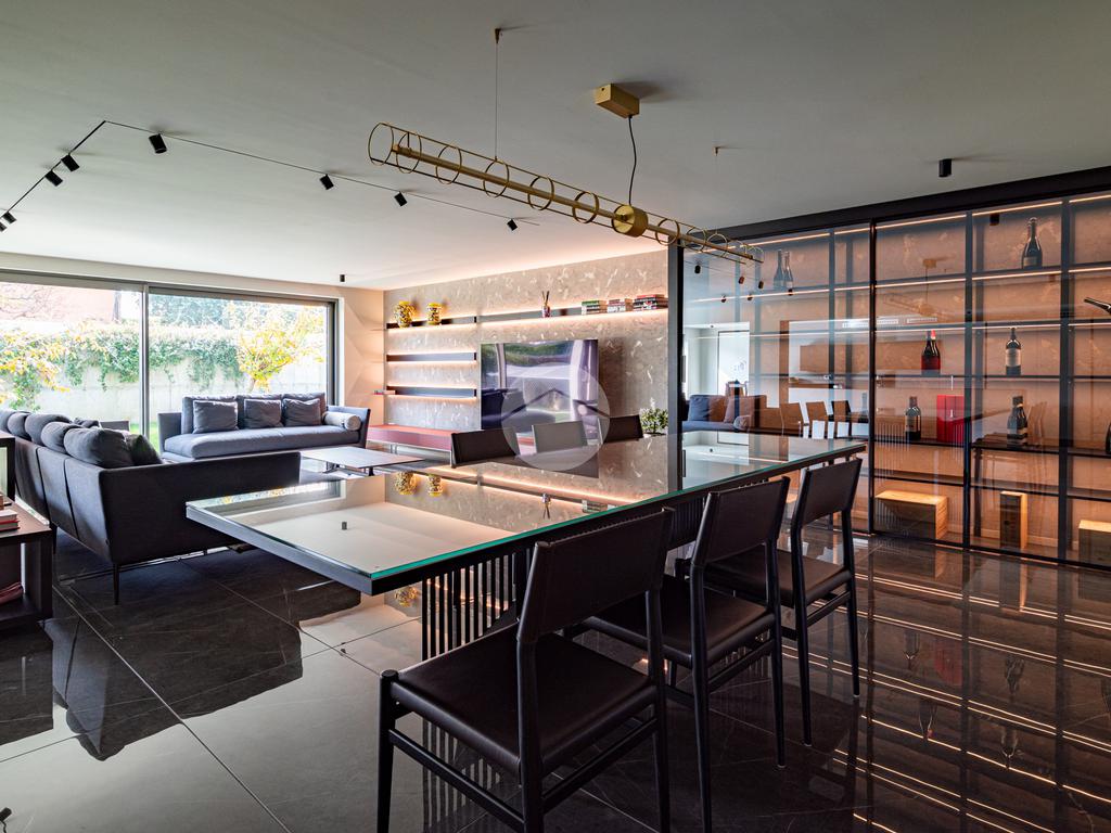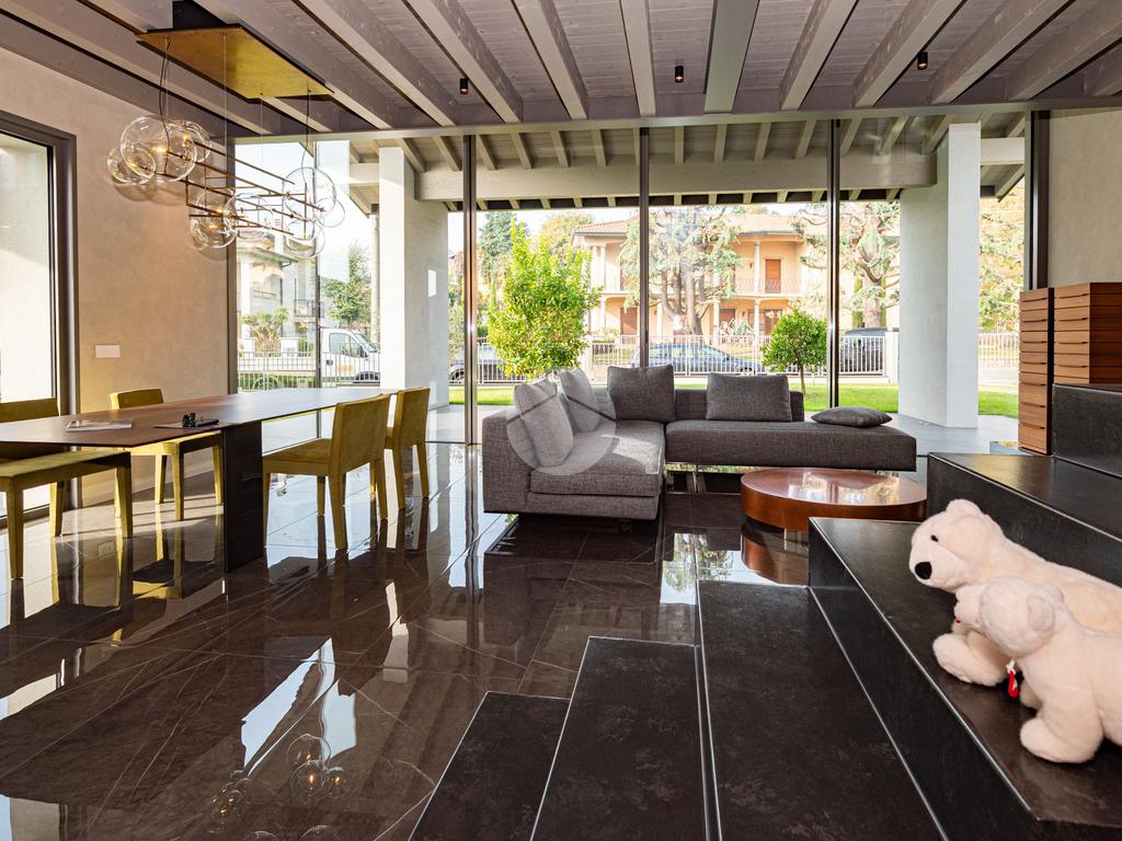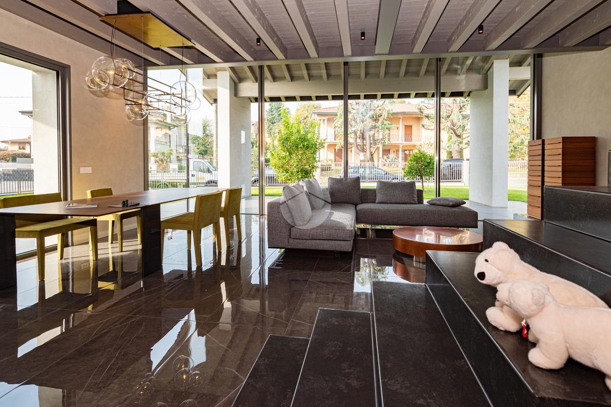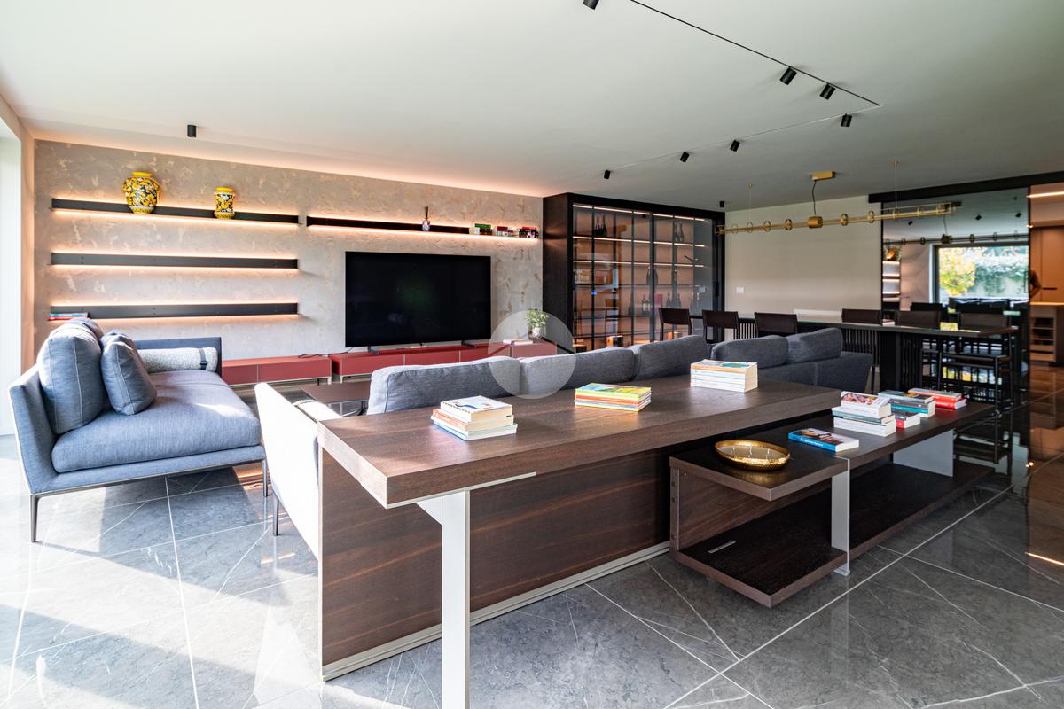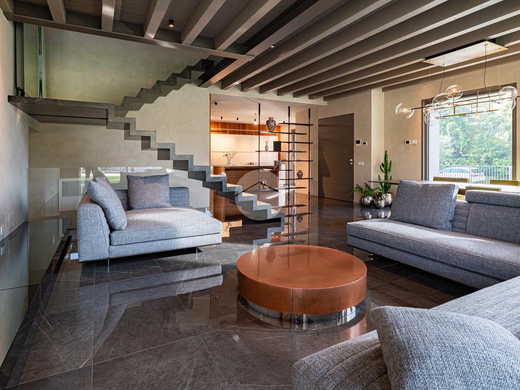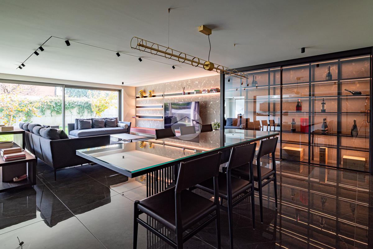 CAZZAGO SAN MARTINO – Elegante residenza di design, unica nel suo genere, completamente ristrutturata nel 2021, situata nella tranquilla frazione di Bornato. Inserita in un lotto di circa 1.300 mq, la proprietà si sviluppa su più livelli: