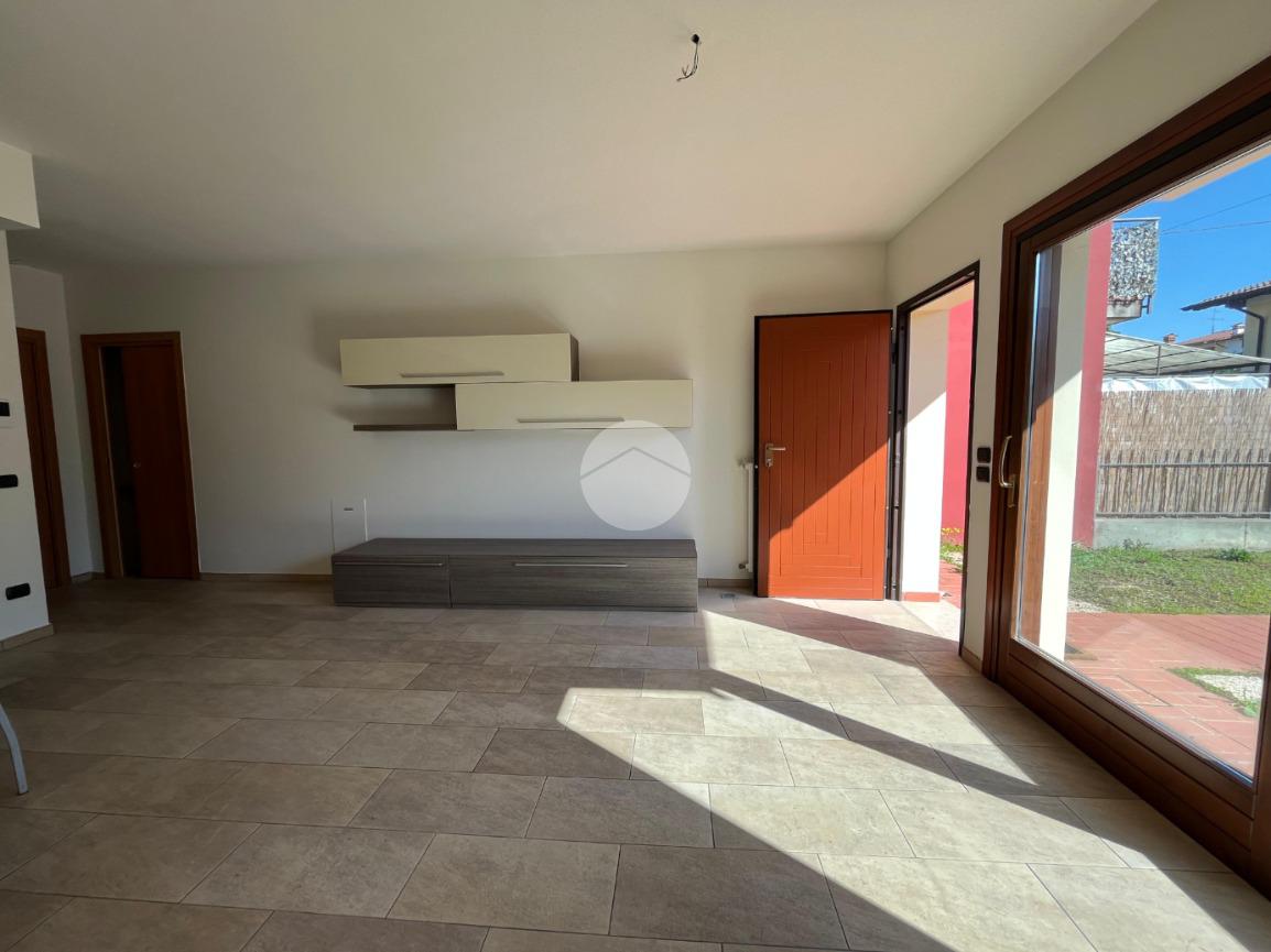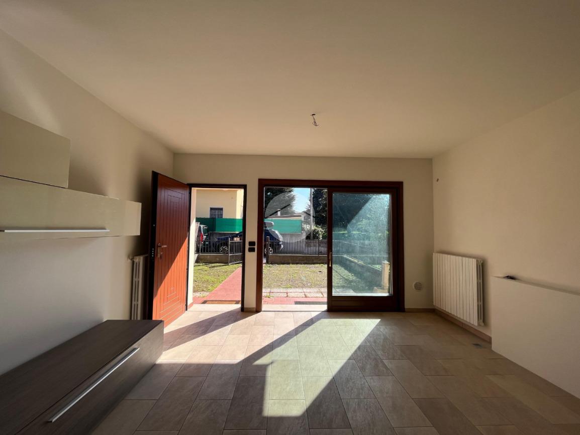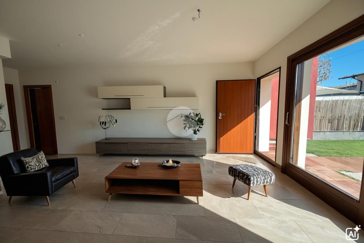 L’abitazione si apre su una luminosa zona giorno open-space, valorizzata da un angolo cottura e da un’ampia porta finestra scorrevole che consente l’accesso diretto al giardino frontale: uno spazio ideale per pranzi all’aperto.