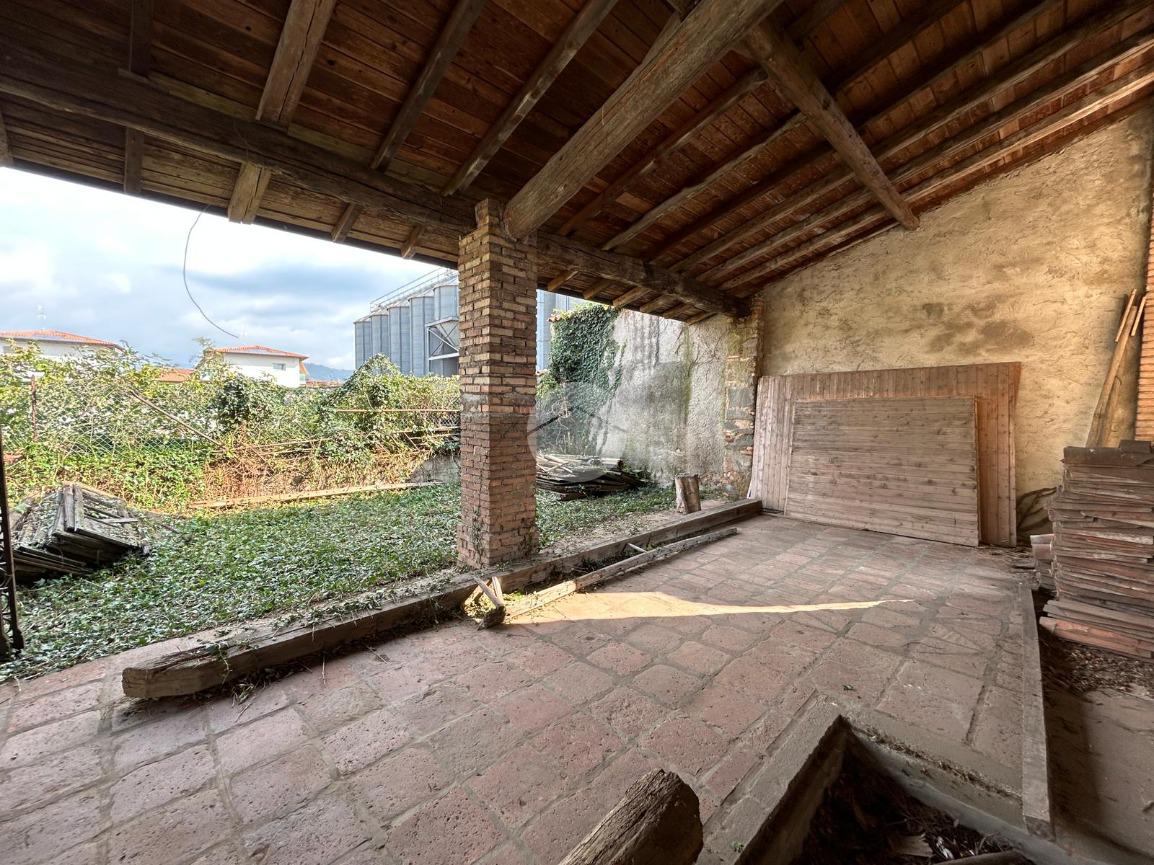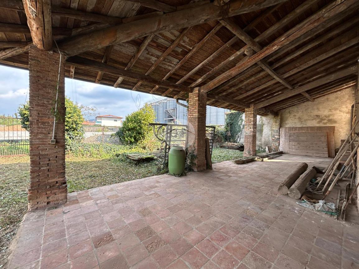 Piano seminterrato (circa 95 mq): due ampie cantine finestrate, ideali come locali accessori, taverna o deposito vini.Piano terra (circa 120 mq): grande openspace con camino antico e diverse aperture che garantiscono ottima luminosità. Gli ambienti sono attualmente spogli, ma si prestano perfettamente alla realizzazione di una spaziosa zona giorno, cucina, studio o camera.Portico esterno (circa 75 mq): copre due lati dell’abitazione, con pavimentazione in cotto e colonne in mattoni a vista. Ideale come zona relax all’aperto o pranzo estivo.Piano primo (sottotetto): locale accessorio con ripostiglio e servizio igienico. Possibilità di recupero ai fini abitativi, secondo le normative vigenti.Caratteristiche principali: